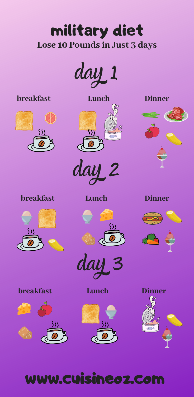 The 3 Day Military Diet Lose Up To 10 Pounds In 3 Days Military 3 Day Diet Plan
