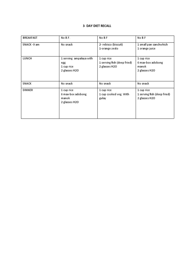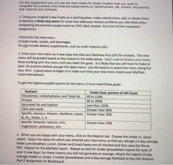 For This Assignment You Will Use The Food Intake F Chegg Com Original 3 Day Diet